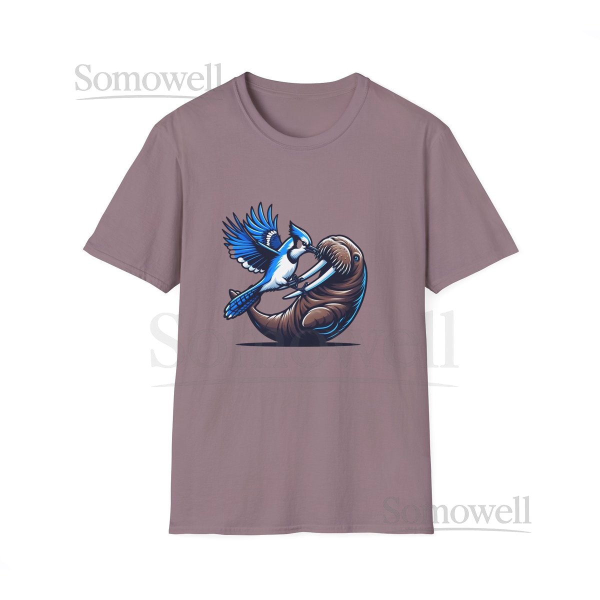Blue Jay vs. Walrus Graphic Tee – Animal Comic Shirt_123