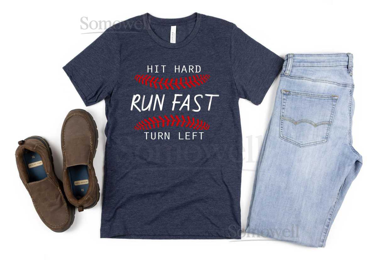 Baseball Shirt Hit Hard Run Fast Turn Left Game Day Tee_62