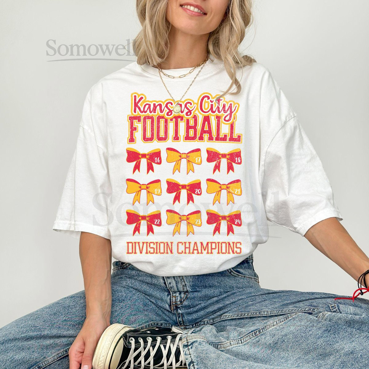 Kansas City Football Nine Time Division Champions T-shirt Retro Chief Football Shirt Feminine Girly Football Tee Coquette Bow Football_348