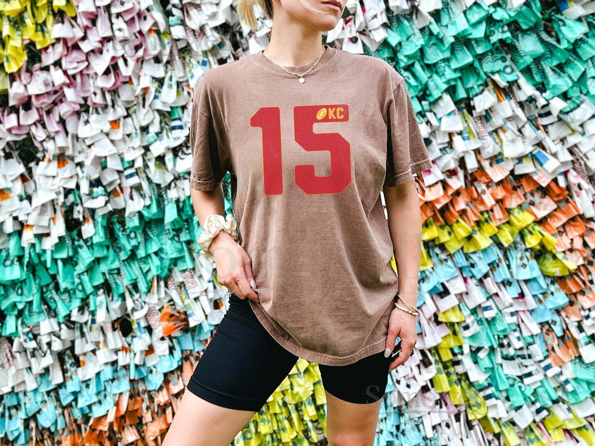 Kansas City Football Comfort Colors Mahomes 15 Crewneck KC Chiefs Game Day Shirt Unisex NFL Fan Apparel Red Gold Fall Hoodie S-469_337