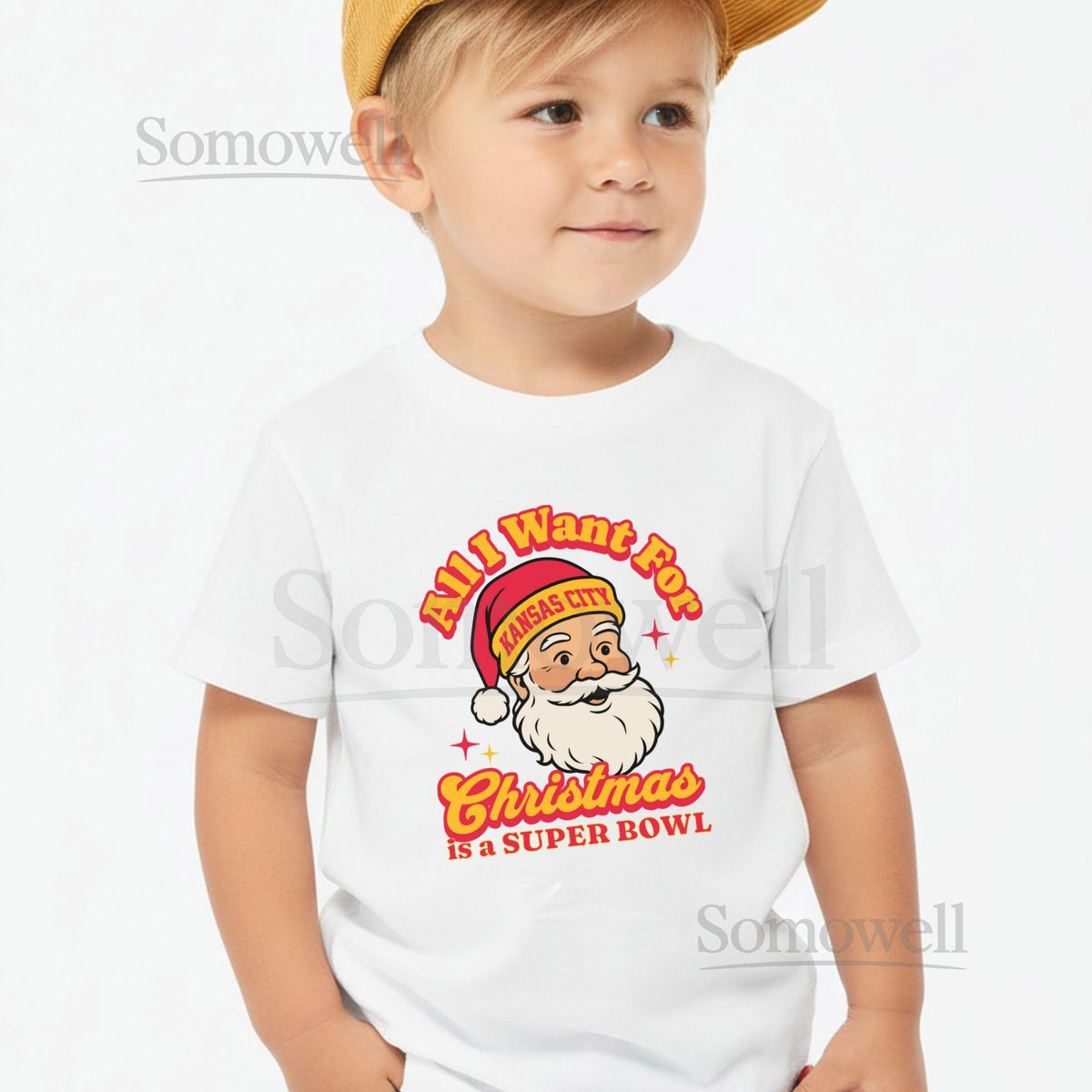 Kansas City Football All I Want For Christmas Is A Super Bowl T-Shirt Toddler Retro Chief Tee Holiday Santa Football Fan Shirt Game Day_331