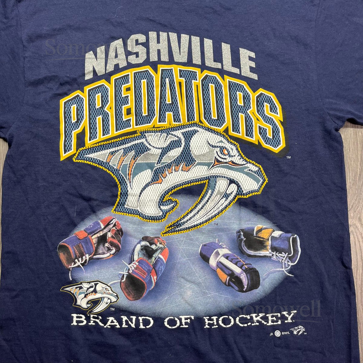 Vintage Nashville Predators 1990s NHL T Shirt Blue Medium Hockey Sports Oversized Made in USA_735