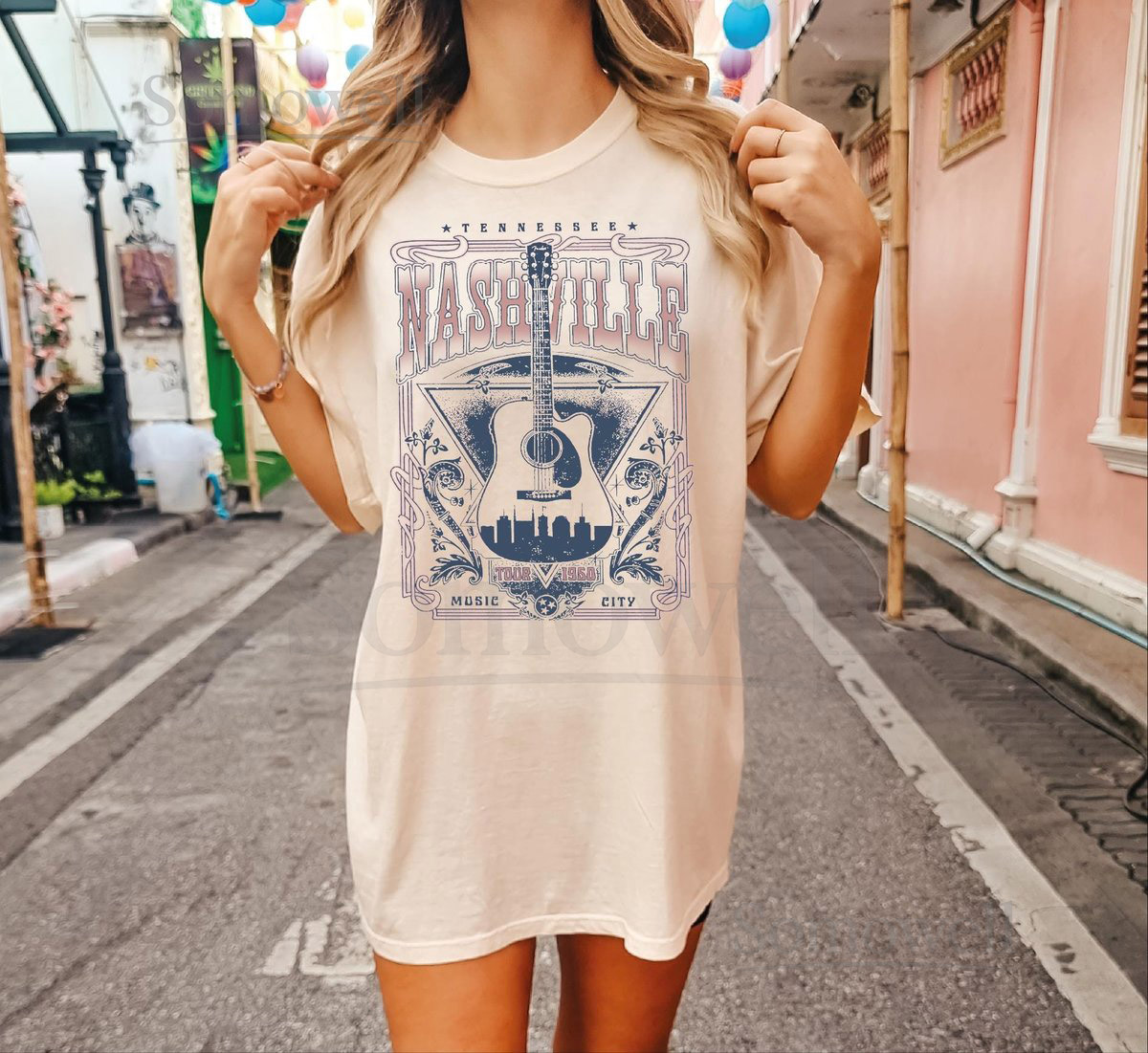 Vintage Nashville Tennessee Comfort Colors Country Music T-Shirt Western Nashville Tee Gift Music City Pullower Nashville S-425_741