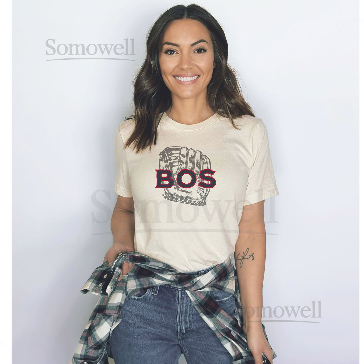 BOS Baseball Tee Boston T-shirt Retro Baseball Shirt Baseball Gift Shirt Sports T-shirts Unisex Baseball Shirt Baseball Glove Tee_143