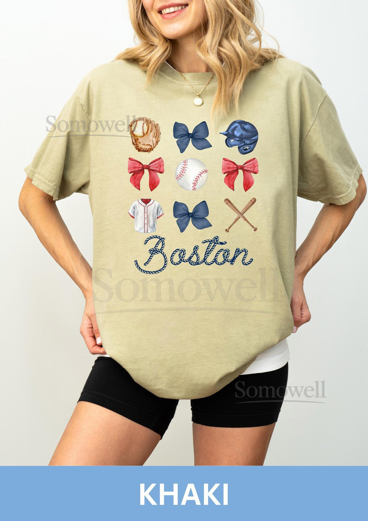 Boston Baseball Comfort Colors Shirt Boston Baseball Shirt Baseball Bow Boston Bow Shirt Boston Fan Game Day Baseball Coquette_147