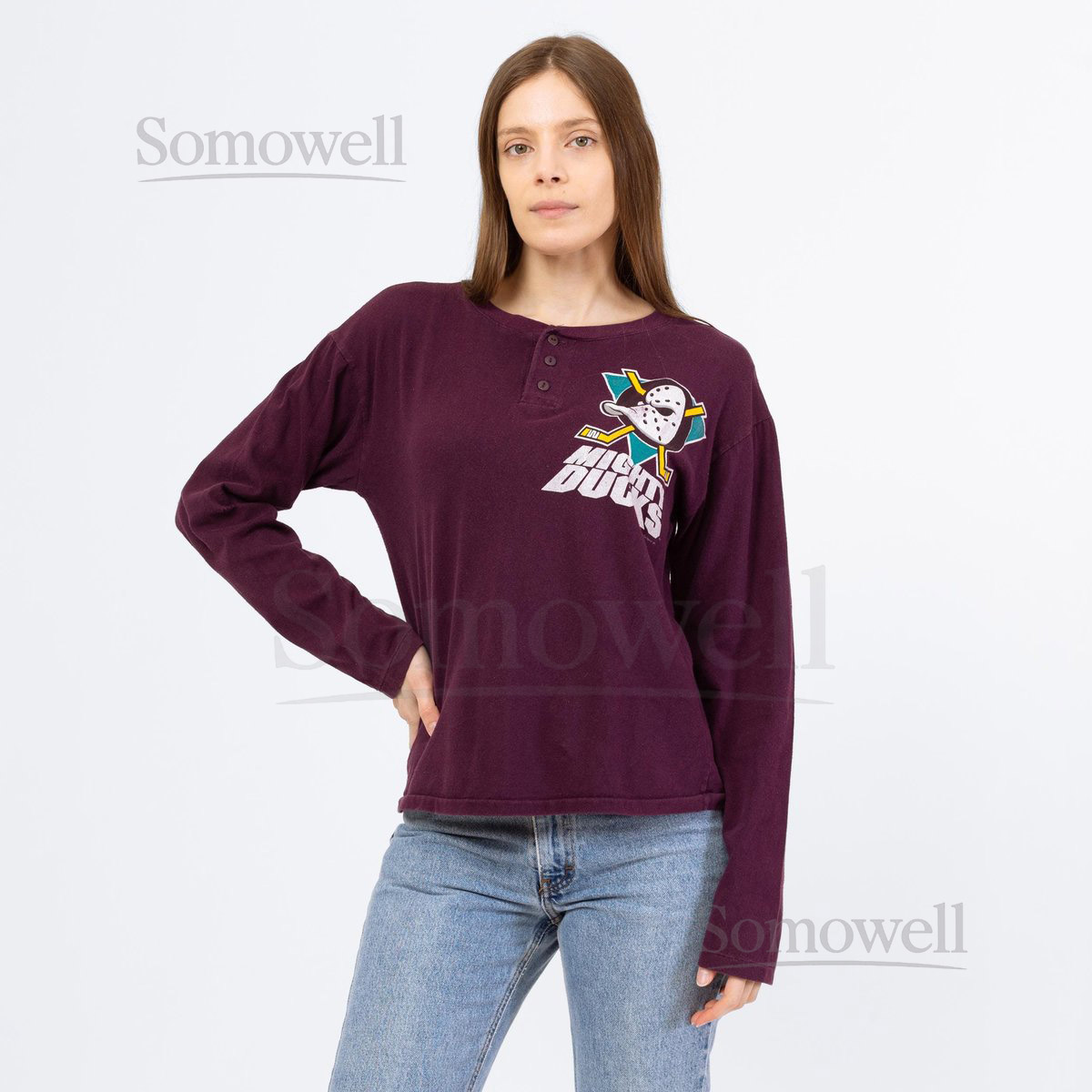 Vintage 90s Anaheim Mighty Ducks Henley Shirt – Medium Unisex NHL Hockey Graphic Long Sleeve Tee_680