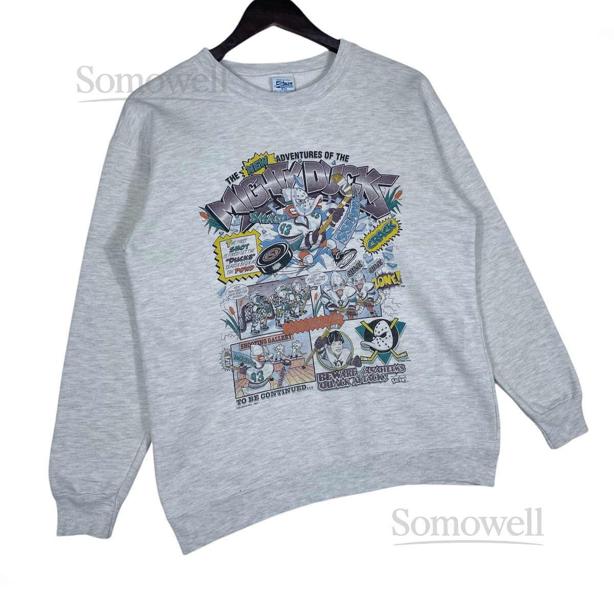 Vintage 1993 The New Adventures of the Mighty Ducks Sweatshirt by Salem Made in USA Gray Comic Style Graphic Crewneck Pullover Size S_674