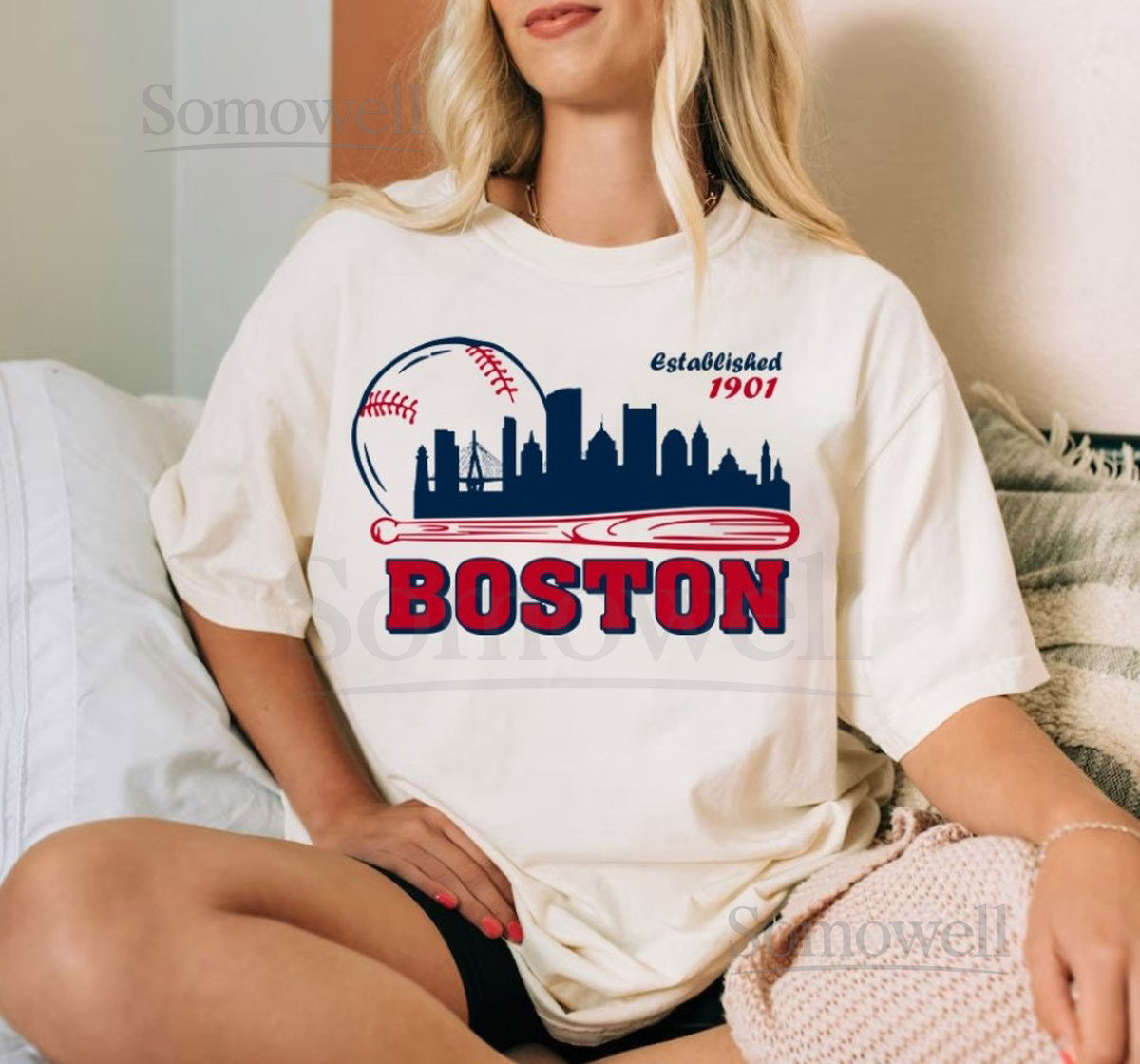 Boston Baseball Vintage Cityscape Minimalist Est 1901 Comfort Color Tshirt Boston Baseball Gameday Retro Style Shirt Sports Tee For Her_166