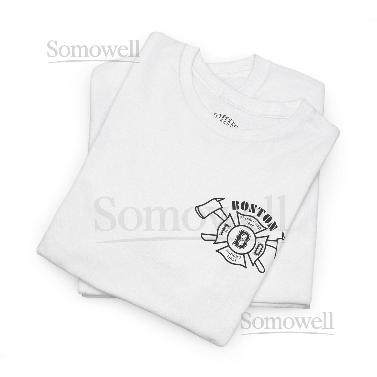 Boston Fire Department Skyline Cityscape Heavy Cotton Tee Shirt tshirt_179