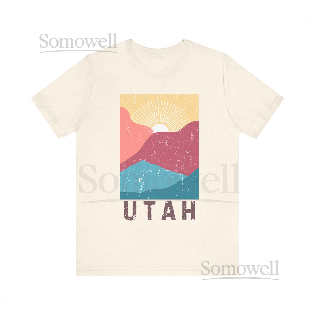 Utah Graphic T-Shirt Vintage Washed Pepper Tee Unisex Western State Shirt Retro Mountain Style Gift Utah USA Travel Souvenir Top Utah Tee_606