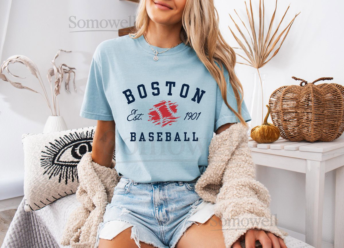 Boston Vintage Baseball Shirt Boston Baseball T-shirt Comfort Colors Shirt Baseball Fan Gift Boston Varsity Shirt Game Day Shirt_232