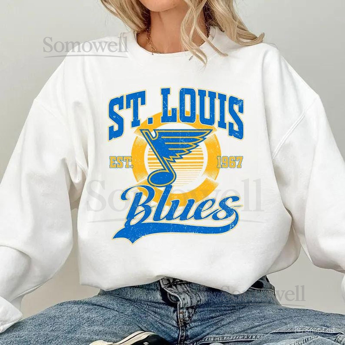 St. Louis Blue Sweatshirt Vintage St. Louis hockey shirt St. Louis Hockey Crewneck Blues Hockey youth sweater Hockey Fan gift_507
