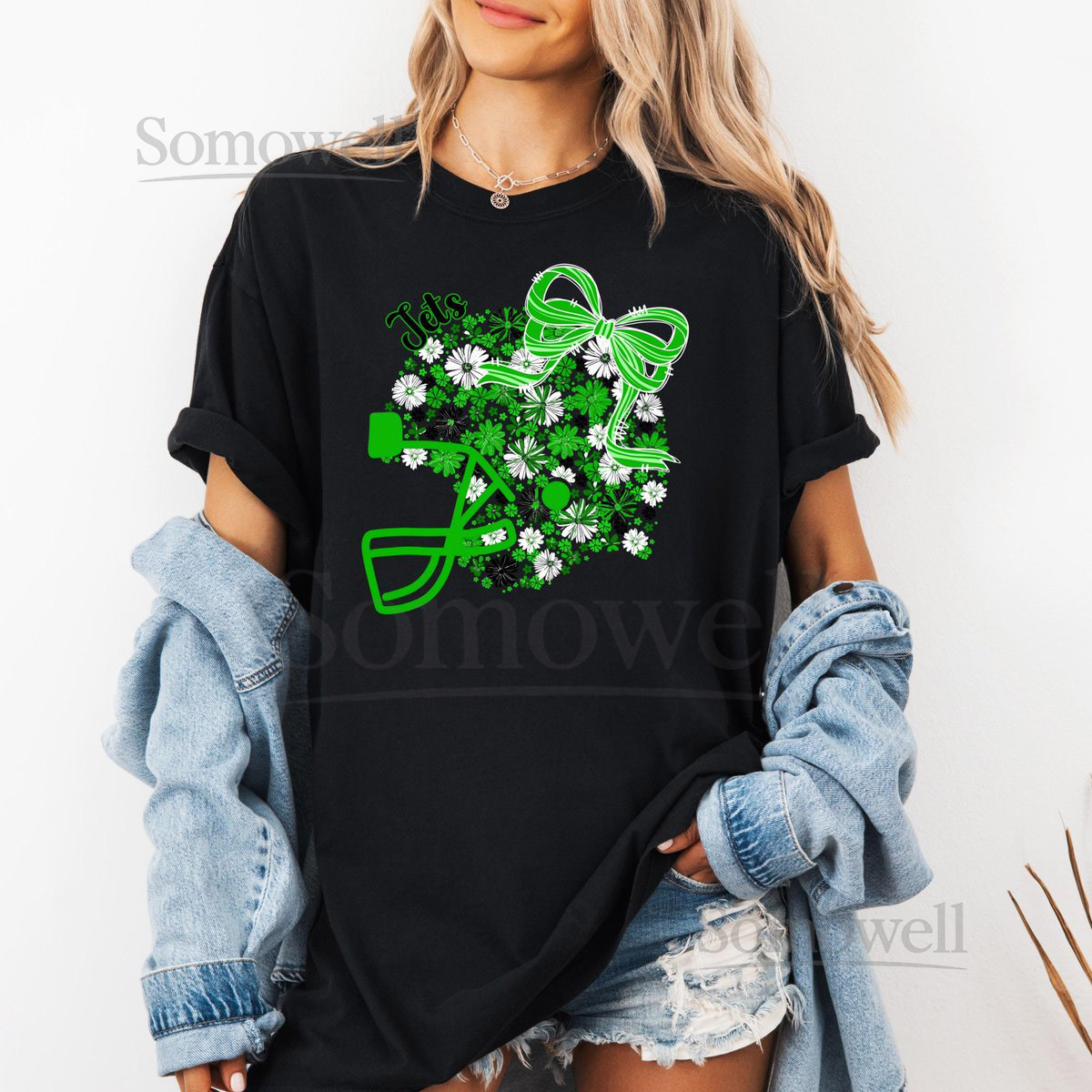 New York Floral Football Helmet T-Shirt New York Jets Shirt Lets Go Jets Cropped Shirt NFL Shirt Jets Game Day Shirt Super Bowl_359