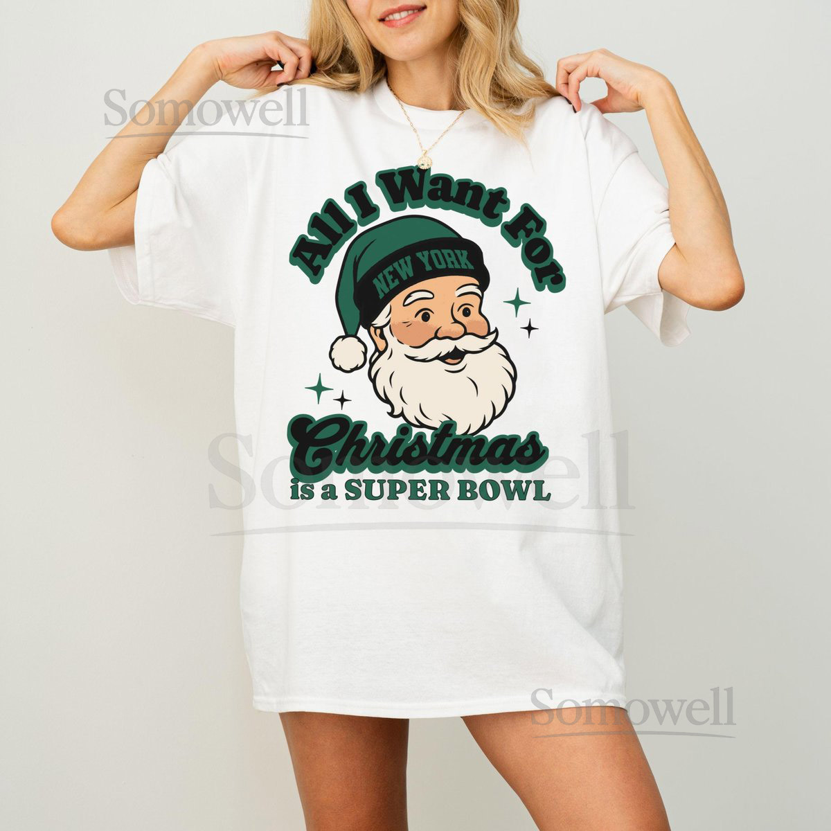 New York Football Christmas Super Bowl T-Shirt Retro Jet Football Tee Holiday Football Fan Shirt Festive Sports Apparel Santa Shirt_361