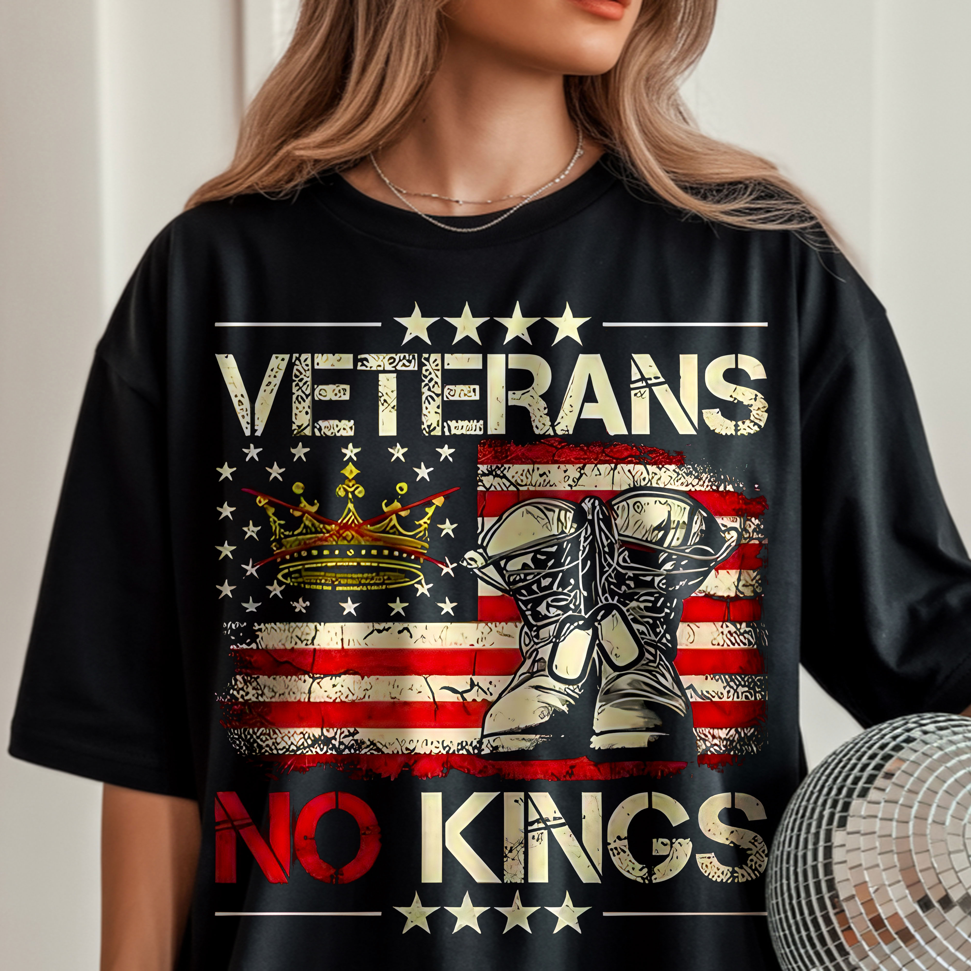 Veterans No Kings American Flag Graphic Sweatshirt, Patriotic Army Pride Pullover, Military Support Tee, Unisex USA Apparel, T-Shirt, Hoodie & Sweatshirt