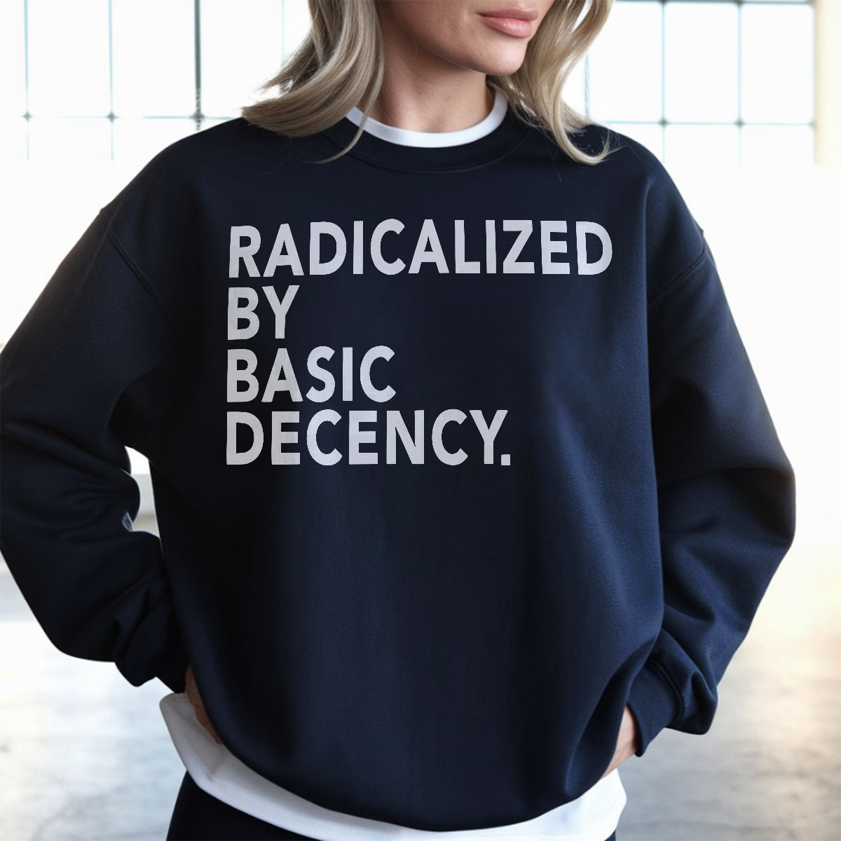 Radicalized by Basic Decency Graphic Sweatshirt, Empowerment Quote Pullover, Social Awareness Statement Tee, Unisex Activist Apparel, T-Shirt, Hoodie & Sweatshirt