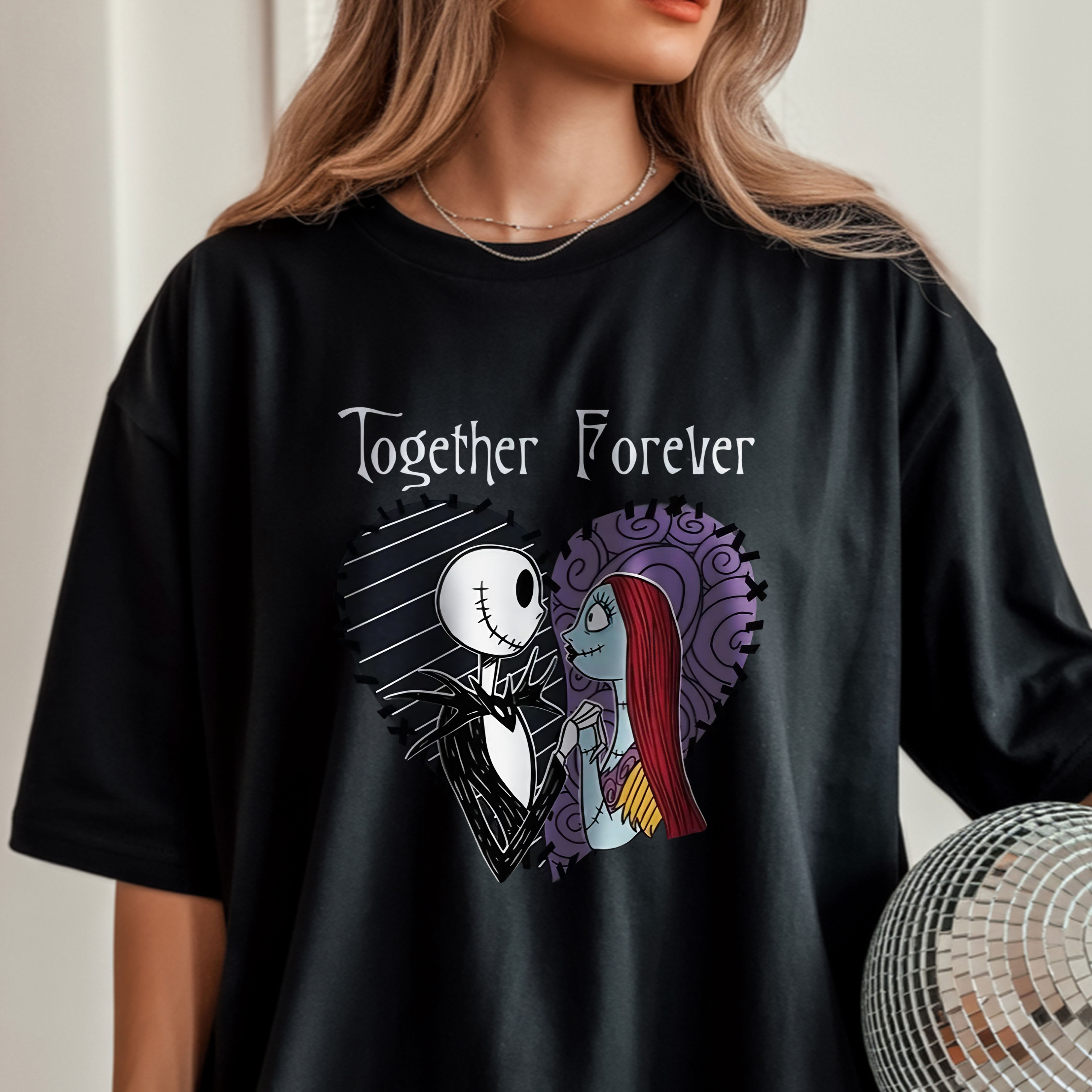 Nightmare Before Christmas Jack and Sally Together Forever Graphic Sweatshirt – Halloween Love Art Tee, T-Shirt, Hoodie & Sweatshirt