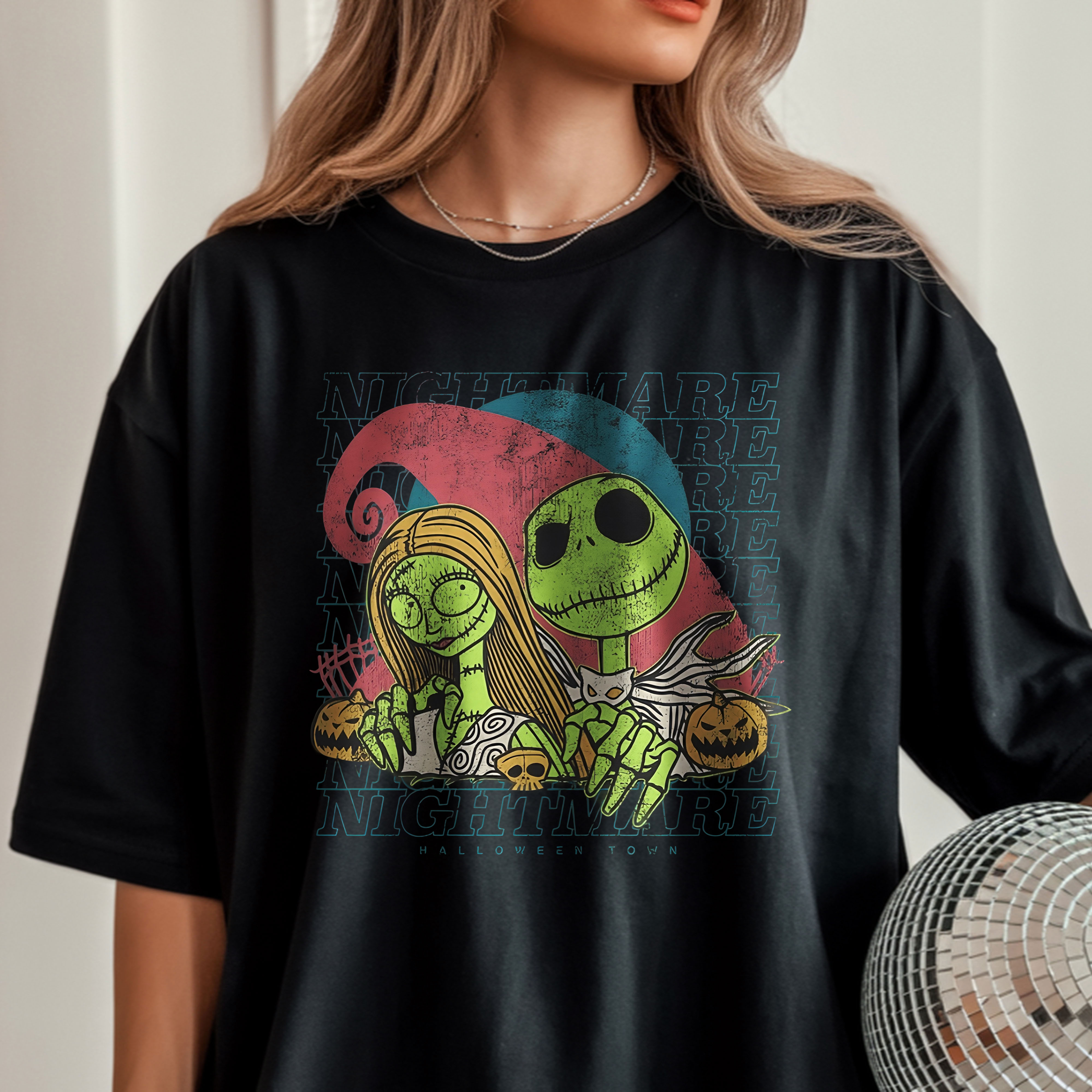 Nightmare Before Christmas Jack Skellington and Sally Halloween Graphic Sweatshirt – Halloween Art Tee, T-Shirt, Hoodie & Sweatshirt