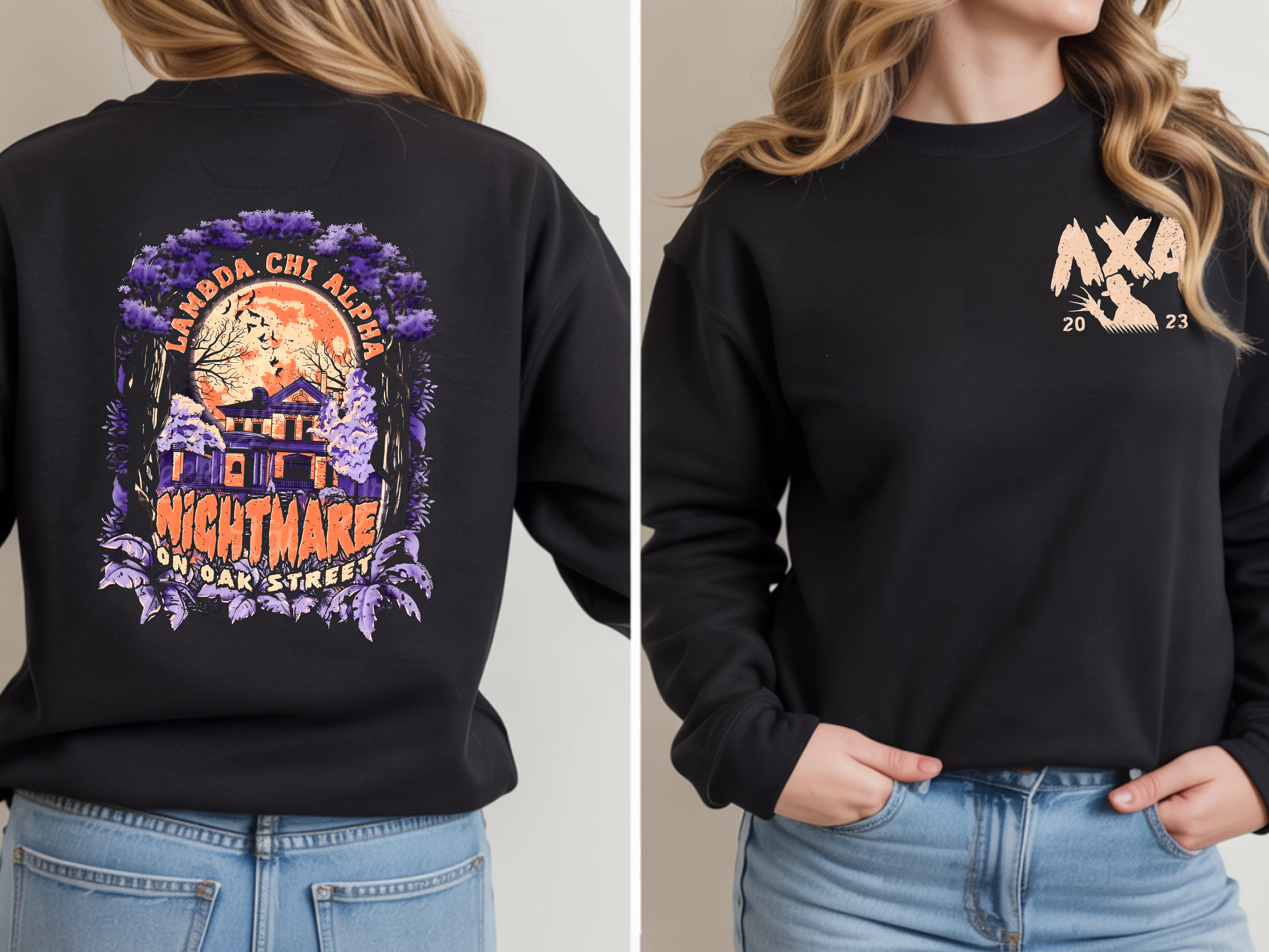 Lambda Chi Alpha Haunted House Two-Sided Design Nightmare On Oak Street Halloween Vintage T-Shirt, Hoodie & Sweatshirt