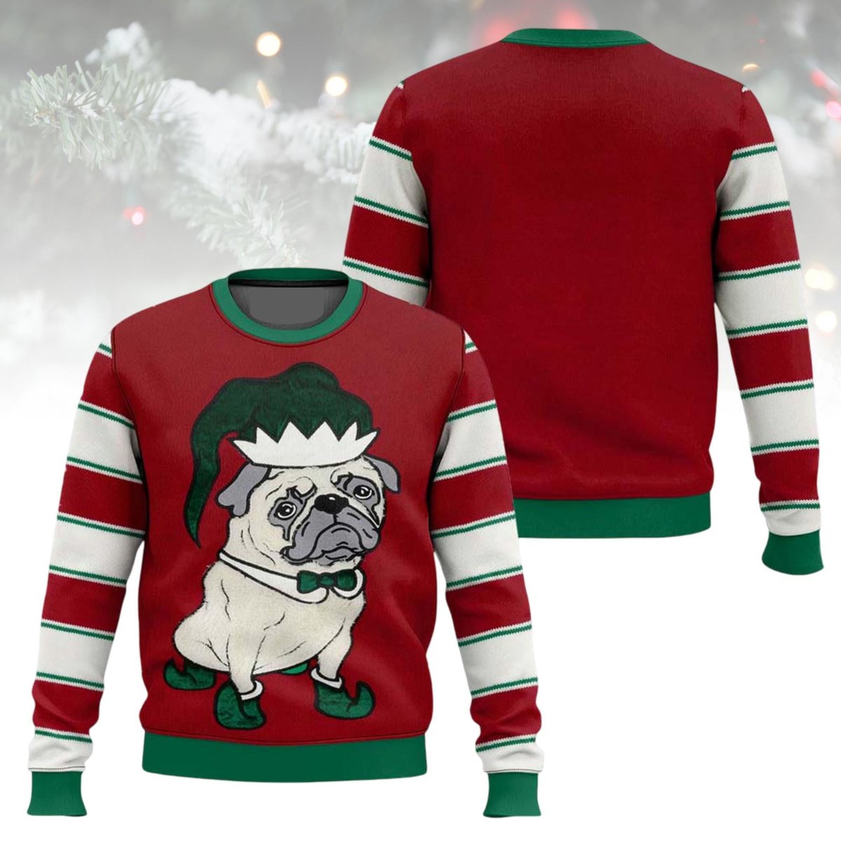 Funny Pug Dog Family Matching Red Ugly Christmas Sweater Holiday Knit Gift