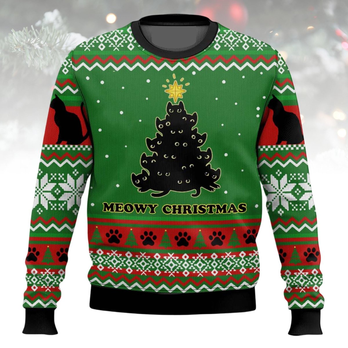 Meowy Christmas Ugly Sweater Funny Cat Lover Holiday Knit
