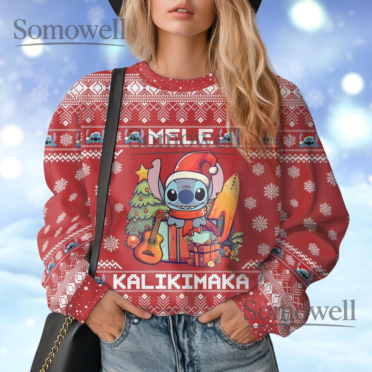 Mele Kalikimaka Stitch Christmas Sweater Red Holiday Knit