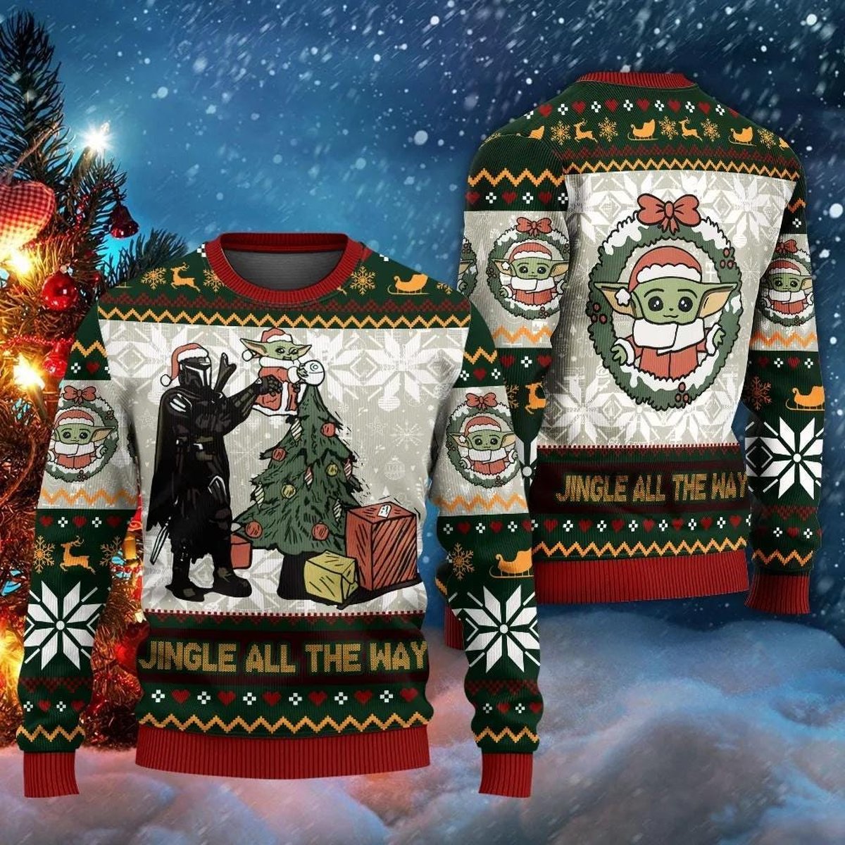 Mandalorian Baby Yoda Jingle All The Way Ugly Christmas Sweater