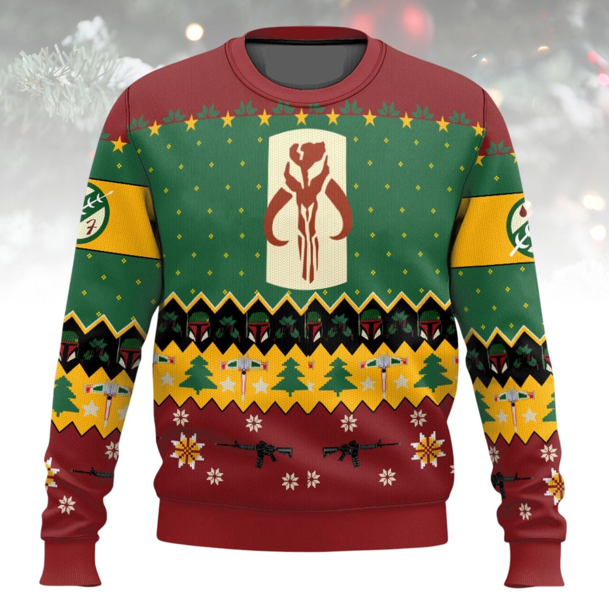 Mandalorian Boba Fett Symbol Green Red Ugly Christmas Sweater Holiday Knit Gift