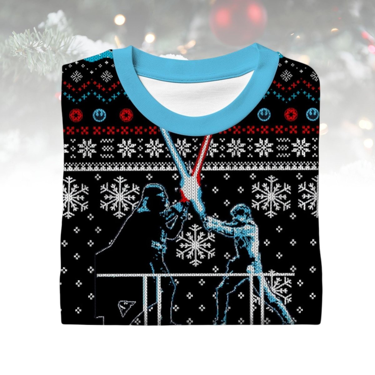 Luke vs Darth Lightsaber Duel Black Star Wars Ugly Christmas Sweater Holiday Knit Gift