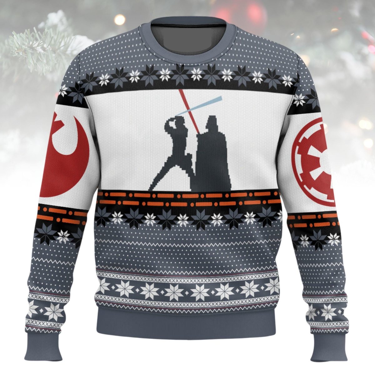Luke Skywalker vs Vader Grey Star Wars Ugly Christmas Sweater Holiday Knit Gift