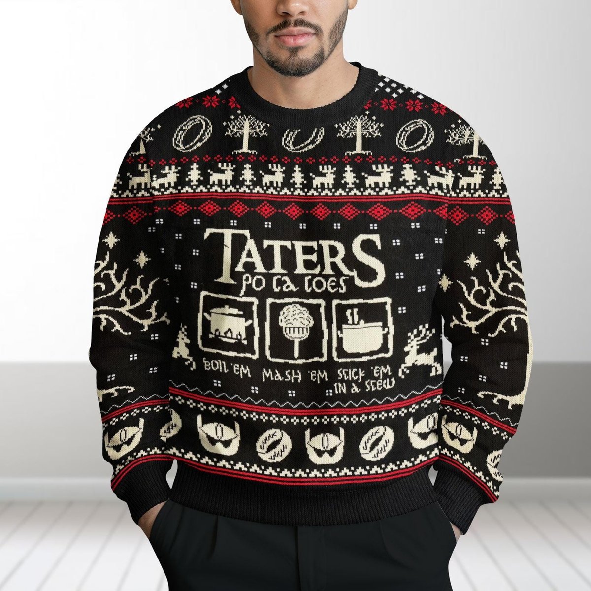 Lord Of The Rings Taters Potatoes Knit Ugly Sweater Funny Hobbit Fans Christmas Gift