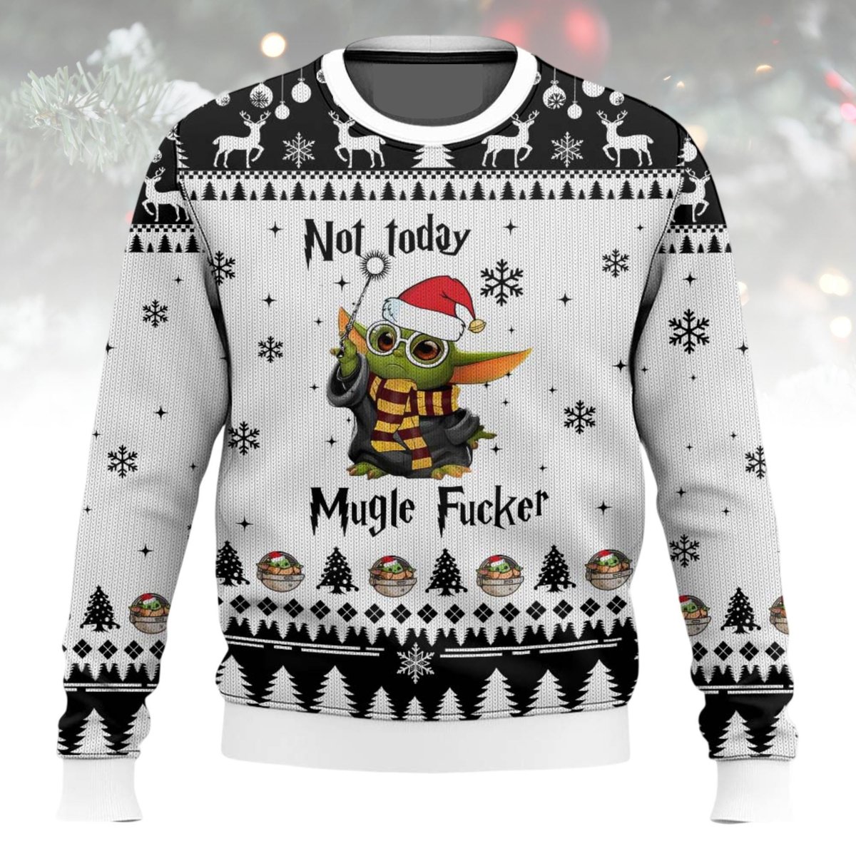 Baby Yoda Not Today Funny Christmas Ugly Sweater Holiday Knit Gift