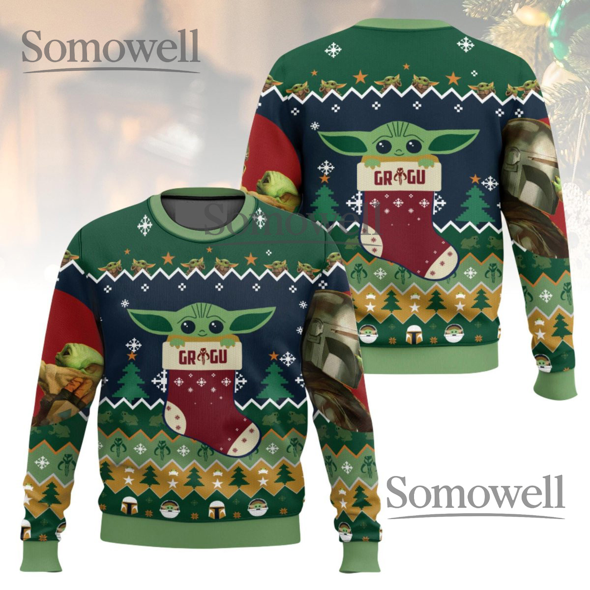 Baby Yoda Grogu Stocking Christmas Sweater Cute Star Wars Knit