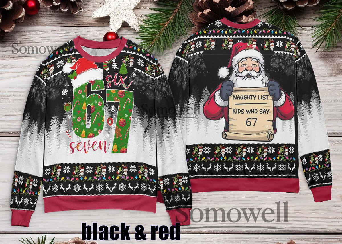 Six Seven Santa Naughty List Kids Ugly Christmas Sweater Irish Green Red Funny Edition Multi Color Edition