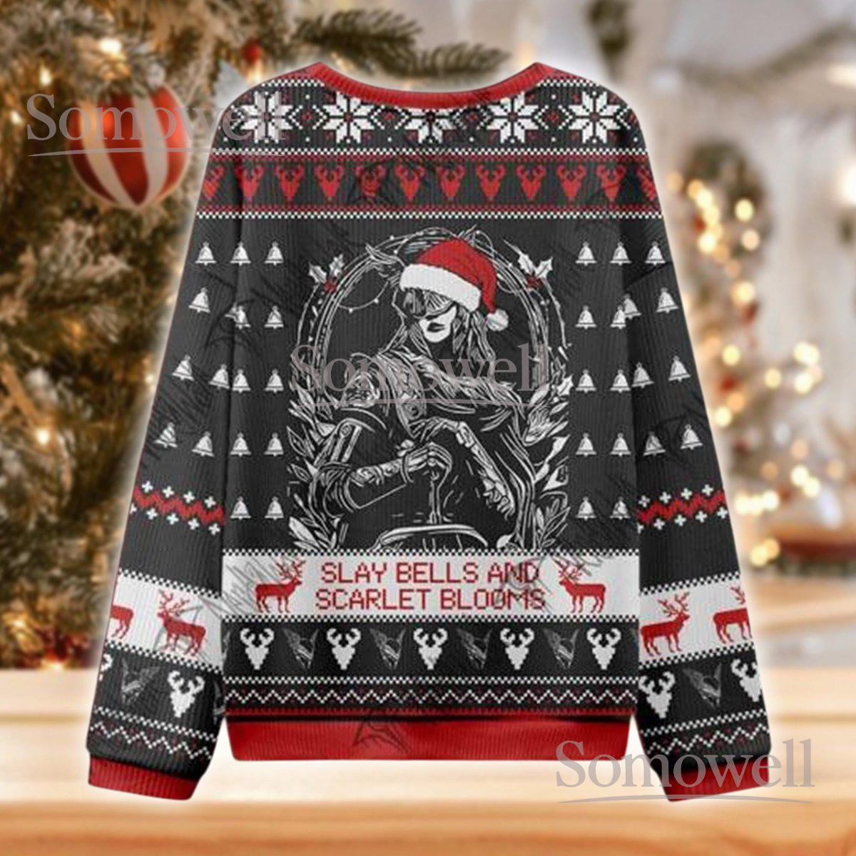 Slay Bells and Scarlet Blooms Christmas Ugly Sweater Holiday Knit Jumper