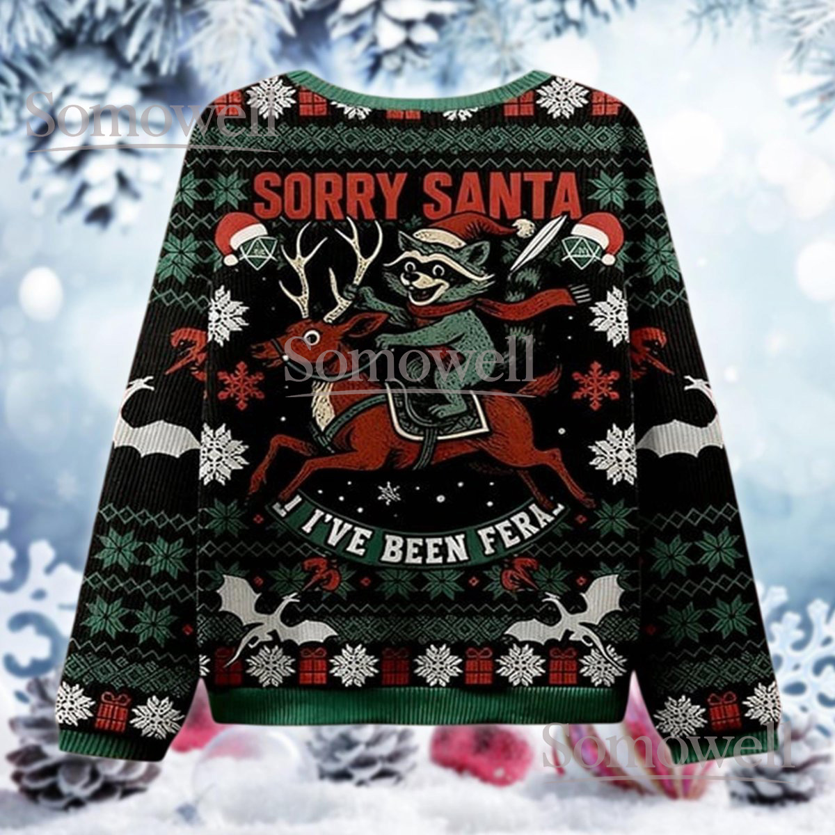 Sorry Santa I’ve Been Feral Ugly Christmas Sweater Funny Cat Raccoon Holiday Gift