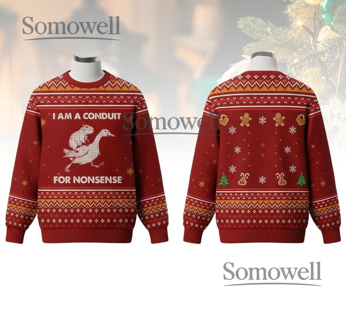 I Am A Conduit For Nonsense Red Funny Quote Christmas Ugly Sweater
