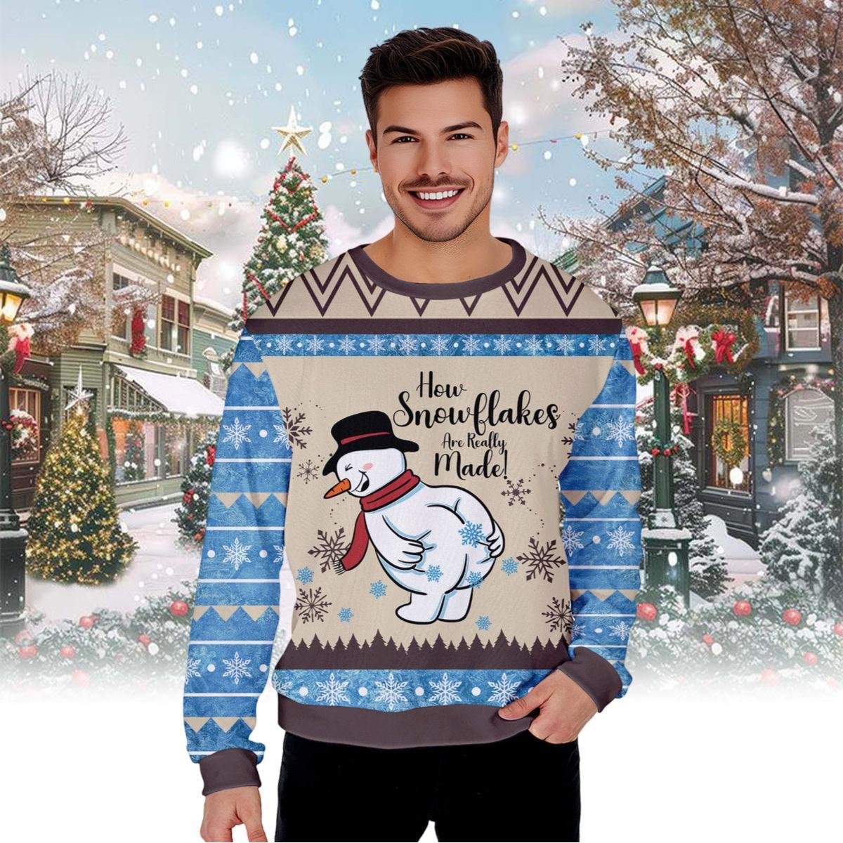 How Snowflakes Are Made Ugly Sweater Funny Snowman Naughty Christmas Gift