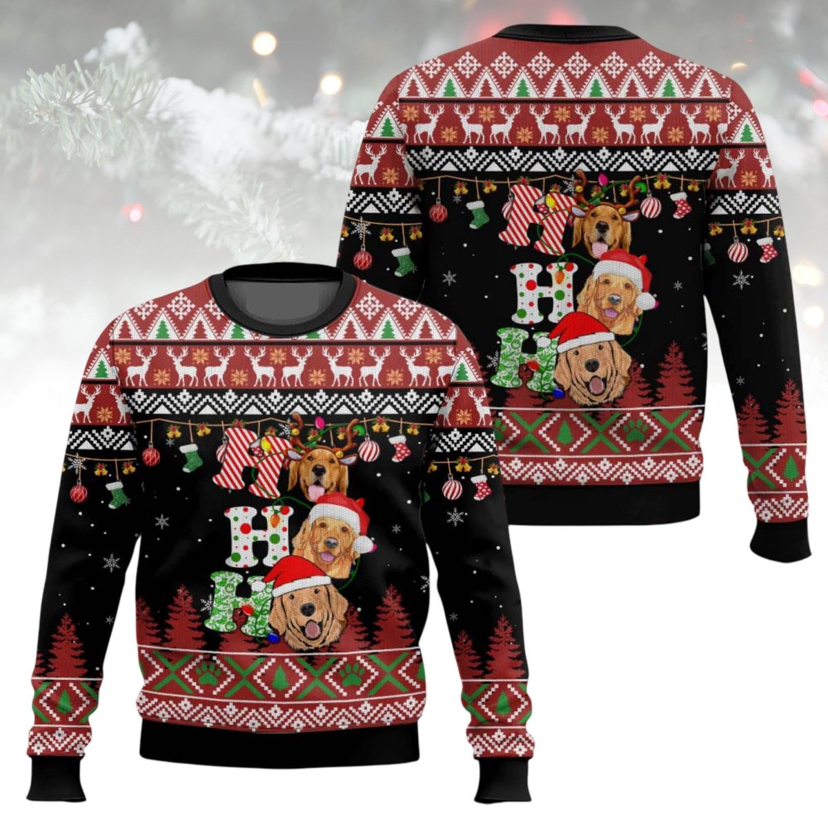Golden Retriever Ho Ho Ho Black Ugly Christmas Sweater Holiday Knit Gift