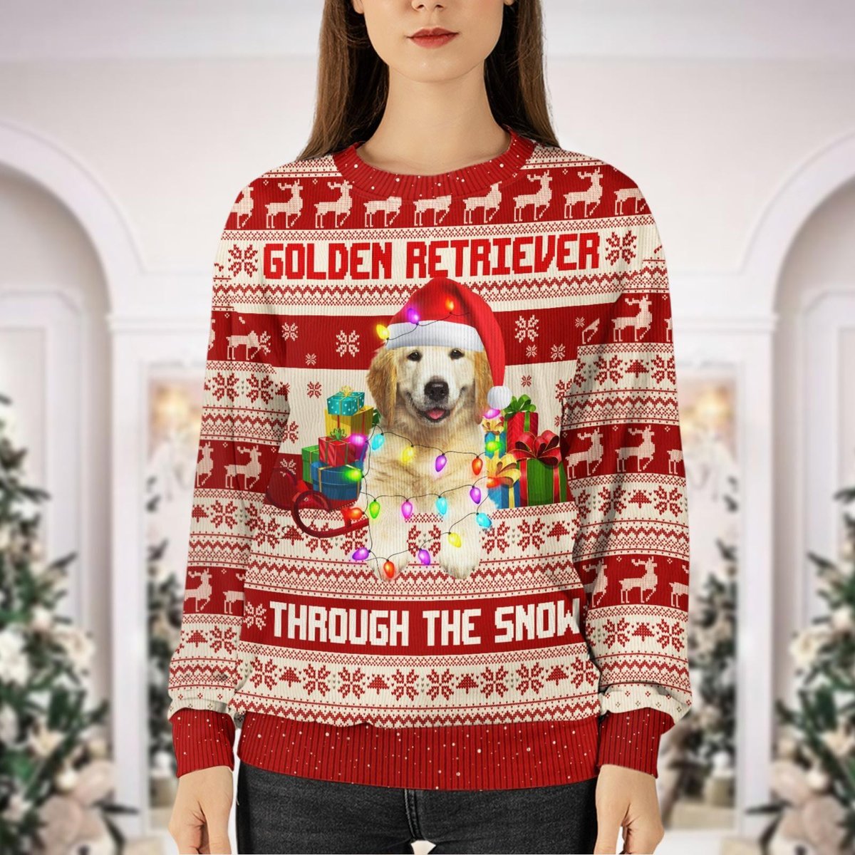 Golden Retriever Dog Ugly Christmas Sweater Pet Lover Holiday Gift