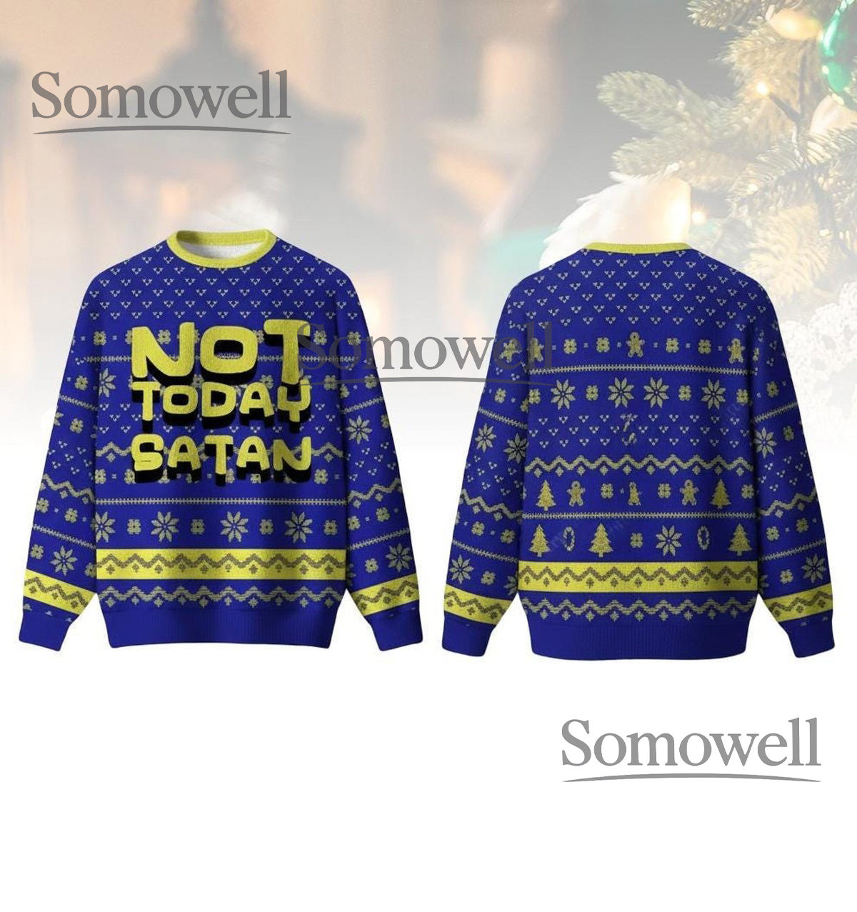 Not Today Satan Ugly Christmas Sweater Funny Christian Holiday Knit