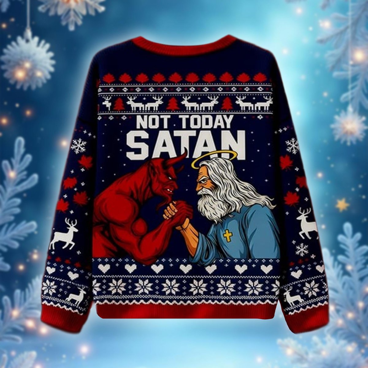 Not Today Satan Ugly Sweater Funny God Vs Devil Meme Christmas Gift
