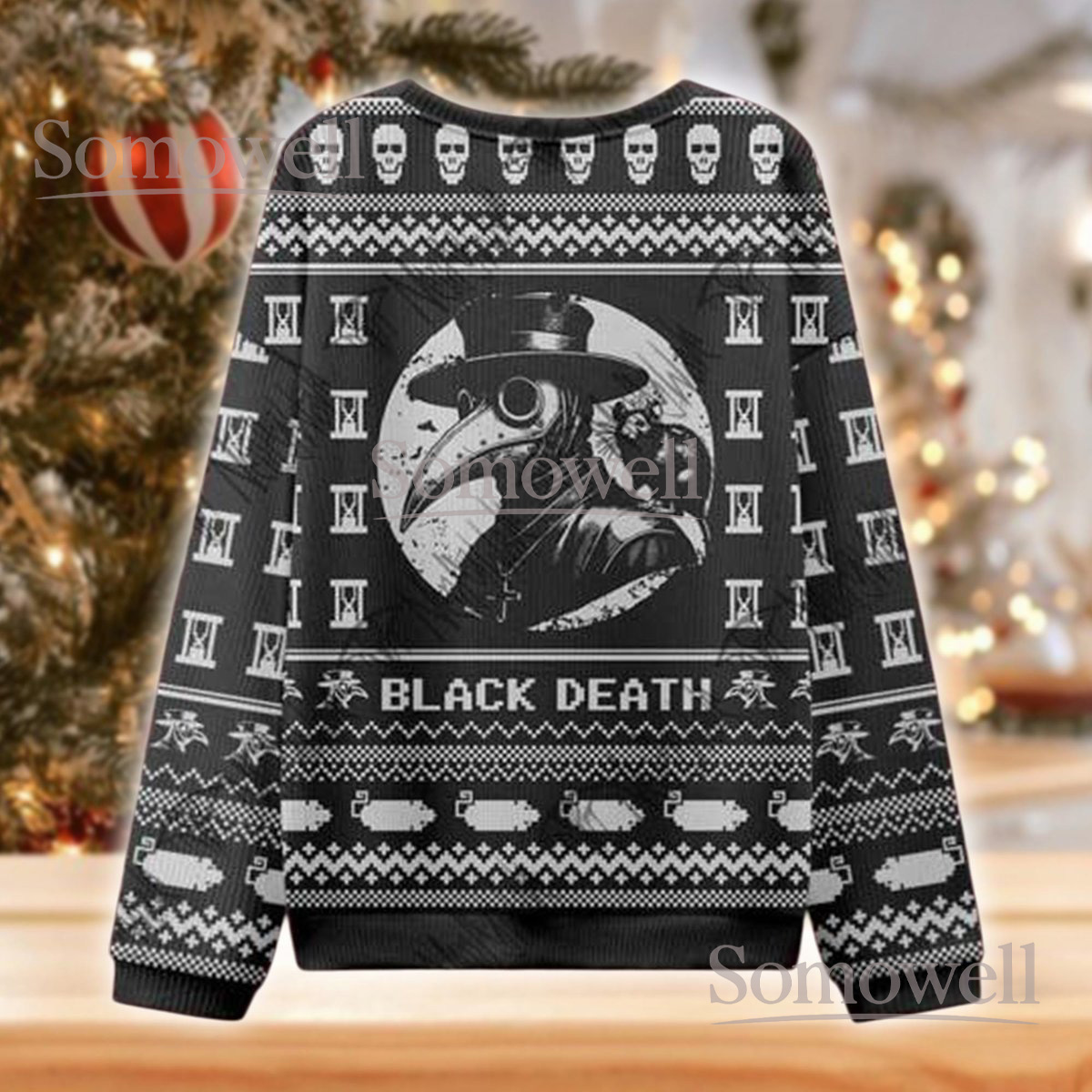 Plague Doctor Black Death Christmas Sweater Gothic Horror Holiday Knit Jumper