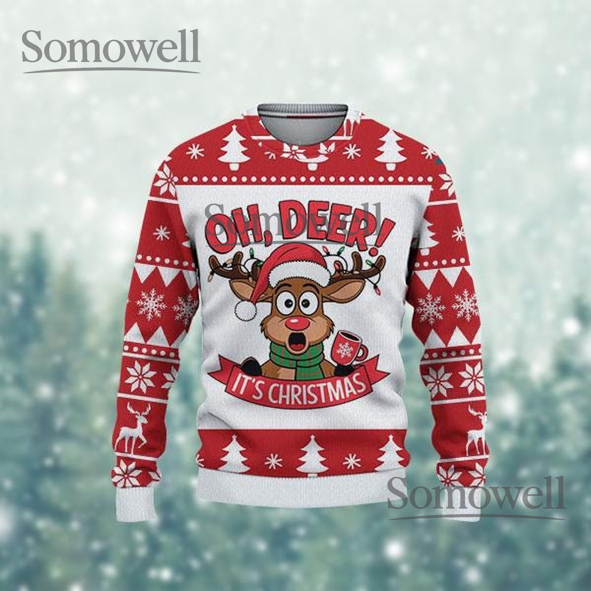 Oh Deer It39s Christmas Knitted Sweater Funny Christmas Ugly Sweater Cozy Winter Gift for Her_4395119531