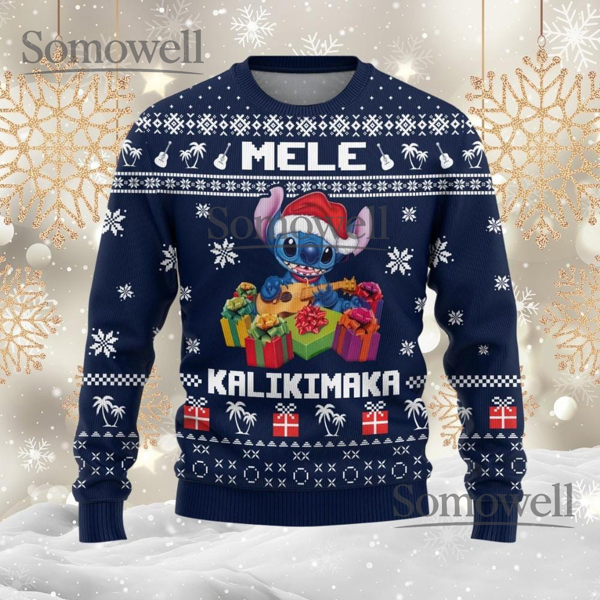 Ohana Mele Kalikimaka Stitch Christmas Sweater Navy Holiday Knit
