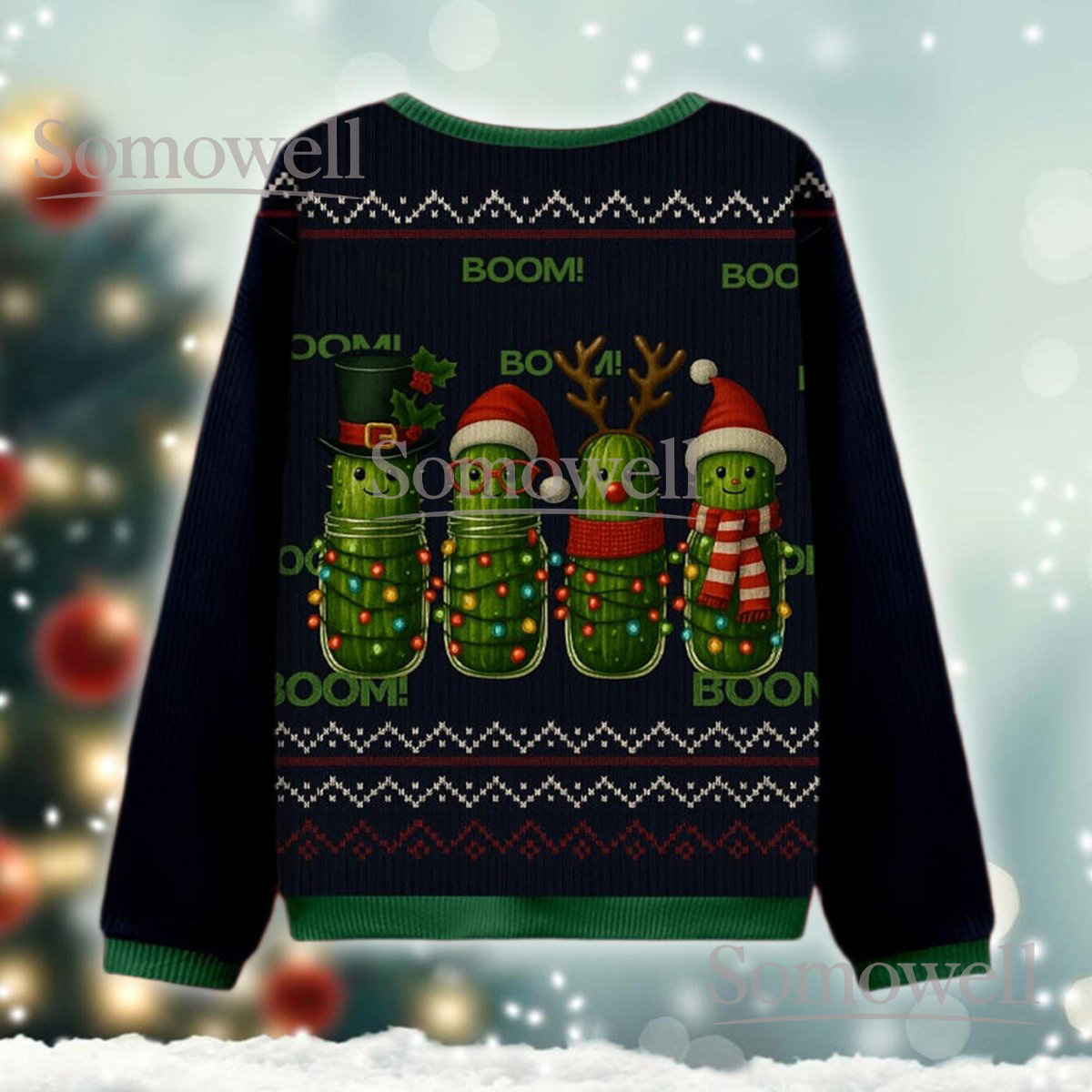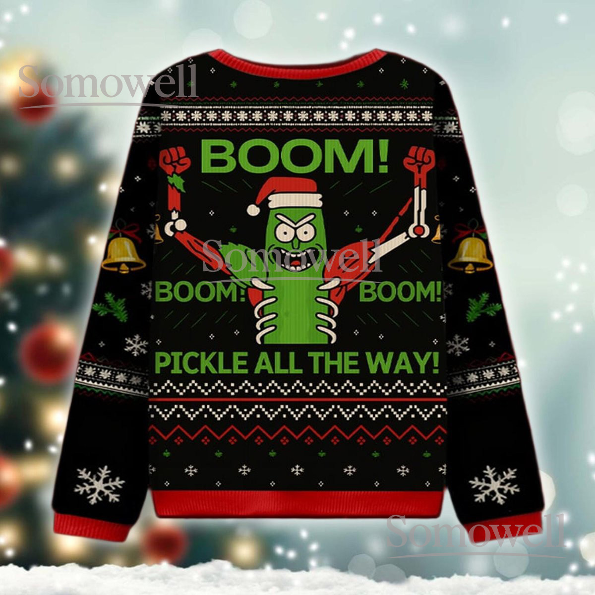 Pickle Christmas Black Ugly Sweater Boom Pickle All The Way Funny Cartoon Holiday Knit Jumper