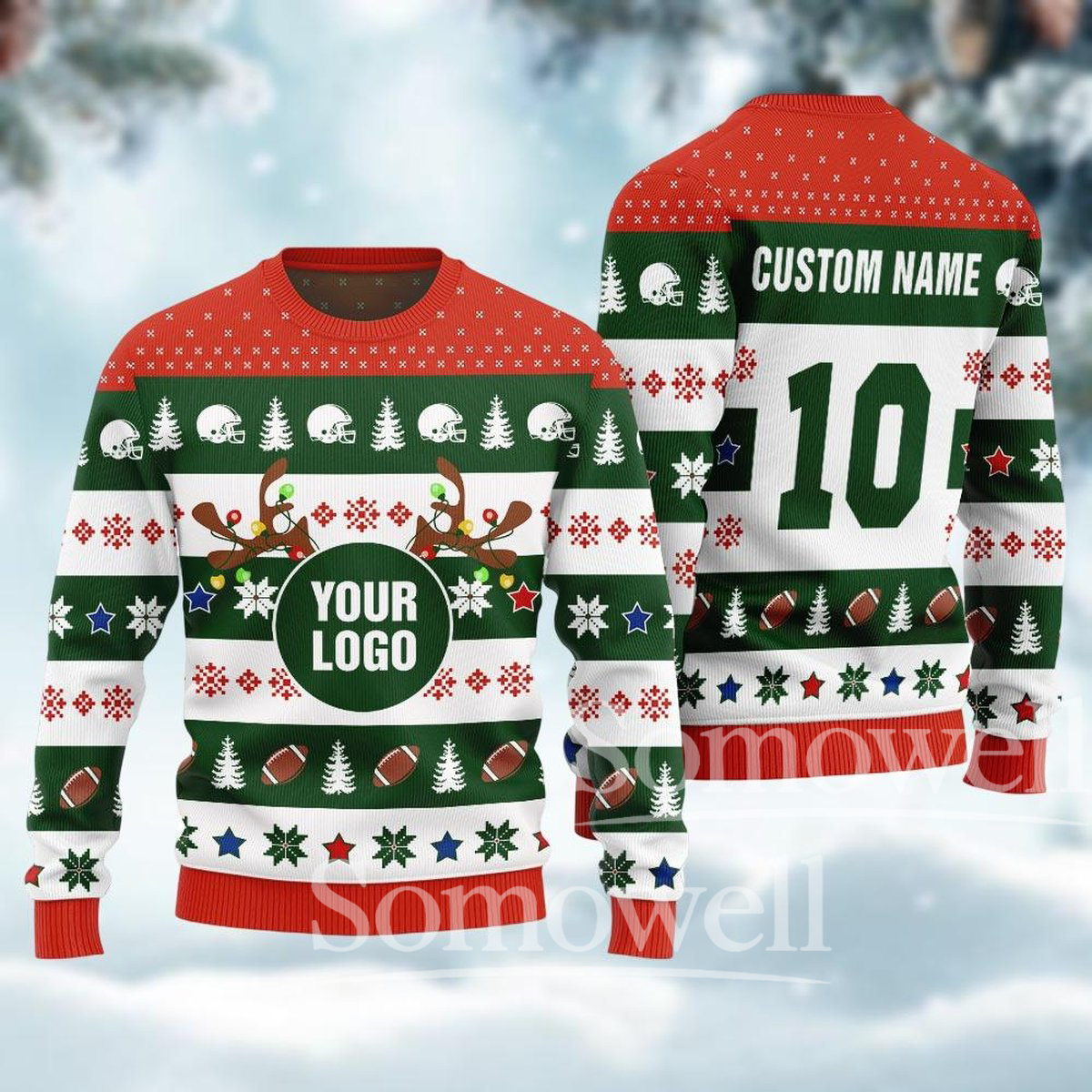 Personalized Logo and Name 3D Ugly Christmas Sweater Custom Multi-color Holiday Sweater for Family Funny Christmas Gift