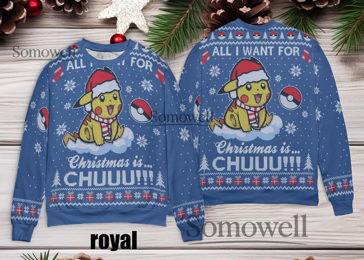 Pikachu Christmas Sweater All I Want for Christmas Chuuu Christmas Sweater for Kids and Adults with Many Colors