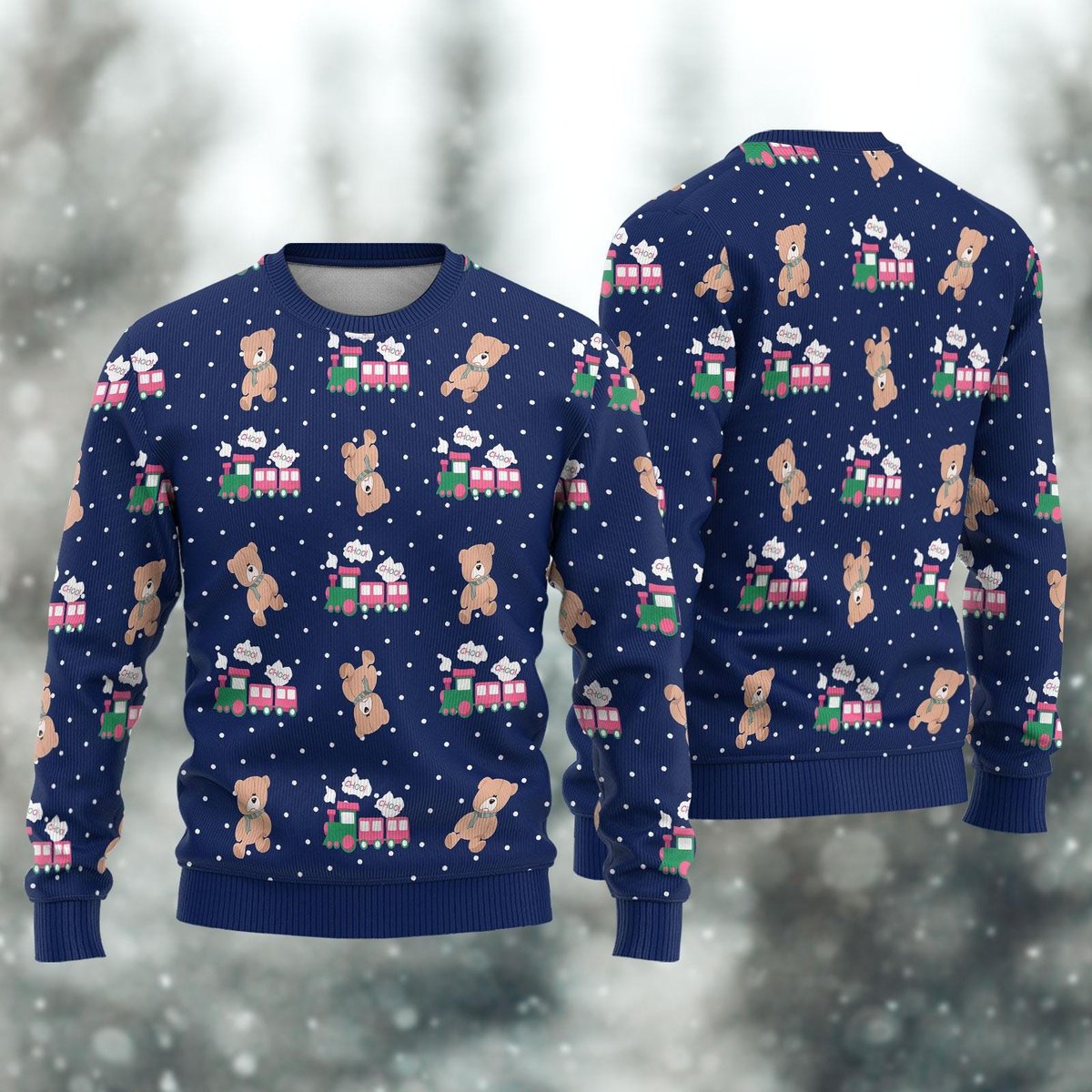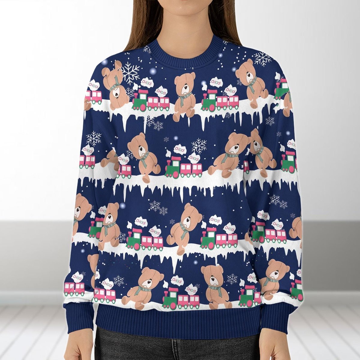 Rumi Choo Choo Bear Train Christmas Sweater Cute Cartoon Holiday Gift