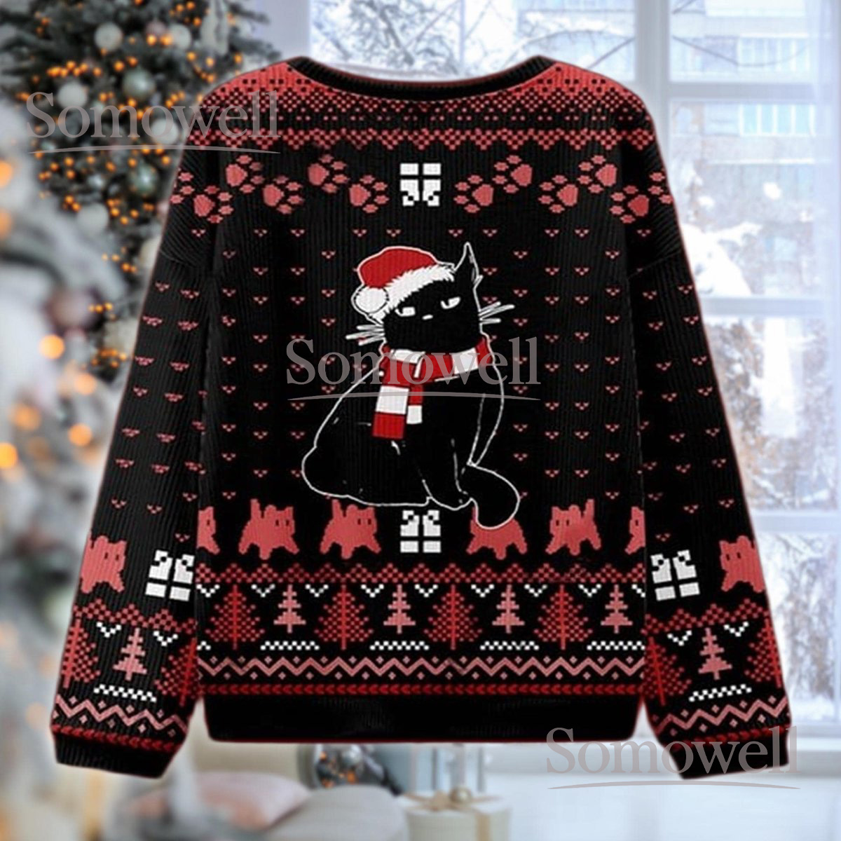 What What Cat Christmas Tree Ugly Sweater Funny Black Cat Holiday Gift